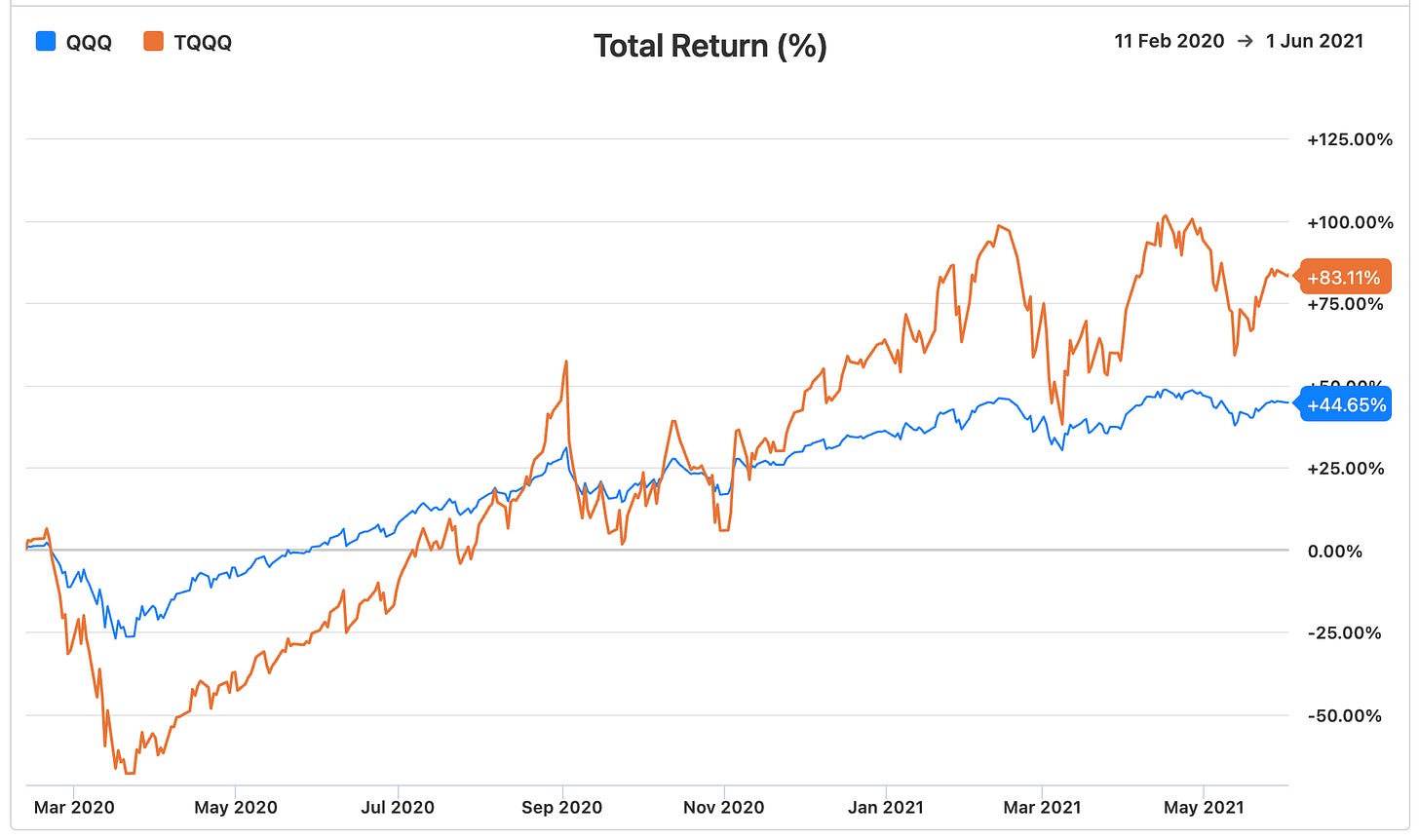 At one point, an investor in TQQQ would have seen their portfolio fall by nearly 80%.